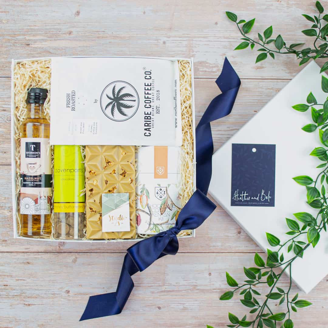To compliment each coffee we have selected a variety of treats such as Studio 28’s Caramelised Milk Chocolate with Hazelnuts, Truffle Dusted, Chocolate Covered Coffee Beans and a delicious Rich Fruit Cake from Simply Delicious. There’s also some incredible Luxury Butter Shortbread from the Northumbrian Bakehouse and a “Proper Coffee” bar from North Chocolates. Finally, the Craster Coffee hamper is finished with a hazelnut syrup to brighten up any coffee break.