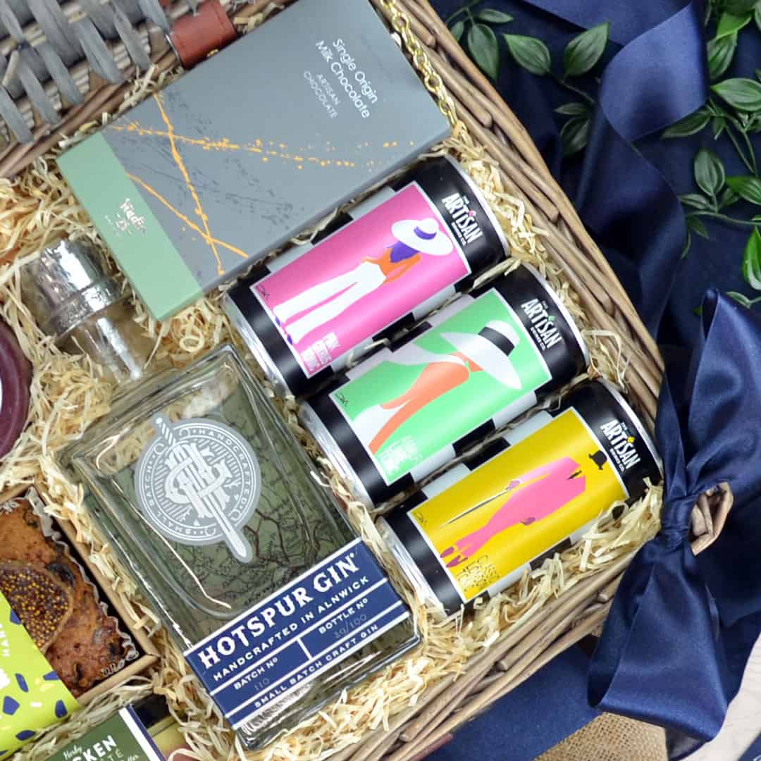 But the delights don’t stop with the gin. This Hotspur Gin Hamper is brimming with an array of delectable treats carefully selected to complement your gin journey. We’ve chosen the beautifully creamy Nettle Cheese from the Northumberland Cheese Company, a smooth Pâté from Cornish Charcuterie, and plump Pitted Olives alongside Rosemary Cashew Nuts for added texture and flavour.