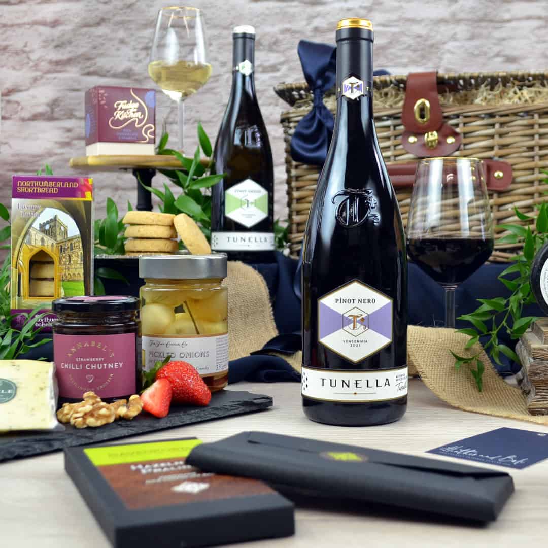 Firstly, discover the exquisite La Tunella Pinot Nero, with a 13% kick, and the alluring La Tunella Pinot Grigio, renowned offerings from the Colli Orientali del Friuli region. These wines tell tales of sun-soaked vineyards and centuries of winemaking tradition and are a great addition to this red and white wine hamper.