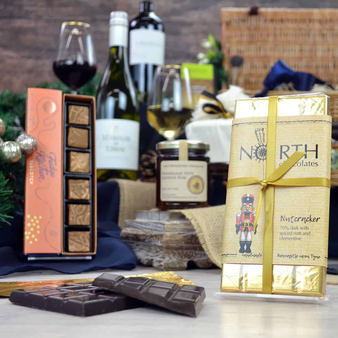 For something sweet, we have selected Alnwick Rum Christmas Pudding to be enjoyed with the Alnwick Rum Marmalade by Lady Waterford Preserves. Next, there’s festive fudge and a “Nutcracker” dark chocolate bar. We have also included Honeycomb pieces, dipped in milk chocolate, by artisan Chocolatier Davenport’s.