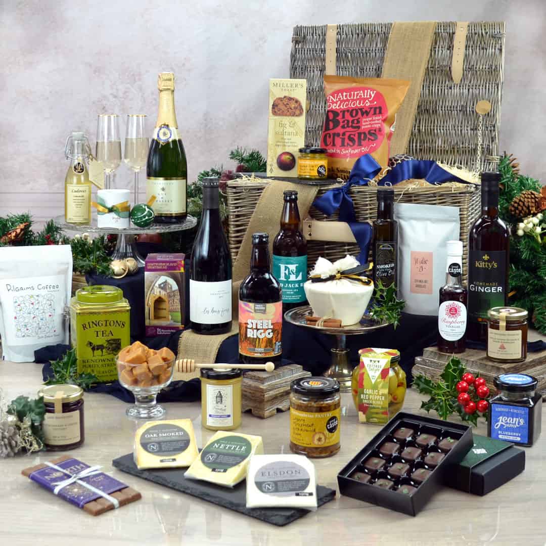 The Festive Northumberland Hamper is finished with a beautifully decorated dark wicker basket to complete this Hamper. With award winning produce & an array of Northern Brands, there’s just one thing left to say….enjoy!