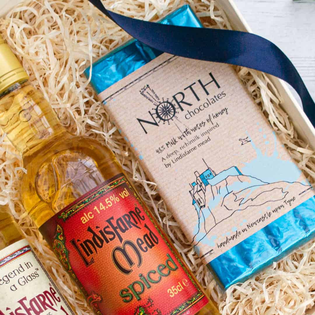 In addition, we have included the delicious North Chocolate. A chocolate bar that is inspired by the Holy Island of Lindisfarne’s mead production. It’s a ‘dark’ milk (48%) and is infused with notes of honey.