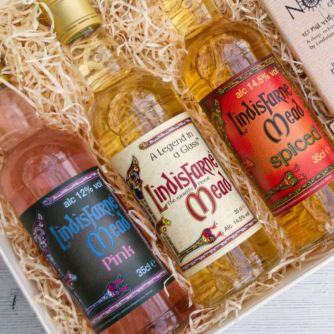 Lindisfarne Mead is a unique alcoholic fortified wine manufactured on the Holy Island of Lindisfarne. It is created using fermented white grapes, honey, and herbs.