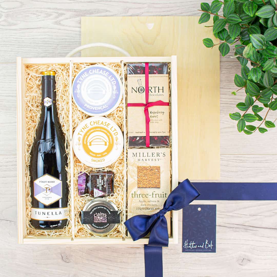 Make an impression with this stunning Luxury Hamper, packed full of delicious local artisan produce, all suitable for Vegans. This hamper showcases a variety of choices that are set to send your taste buds souring. Firstly, a beautiful Pinot Nero by La Tunella. Find, juicy, crushed raspberry flavours with delicate warm spice. This soft and spicy red pairs perfectly with our selection of vegan chease and treats.