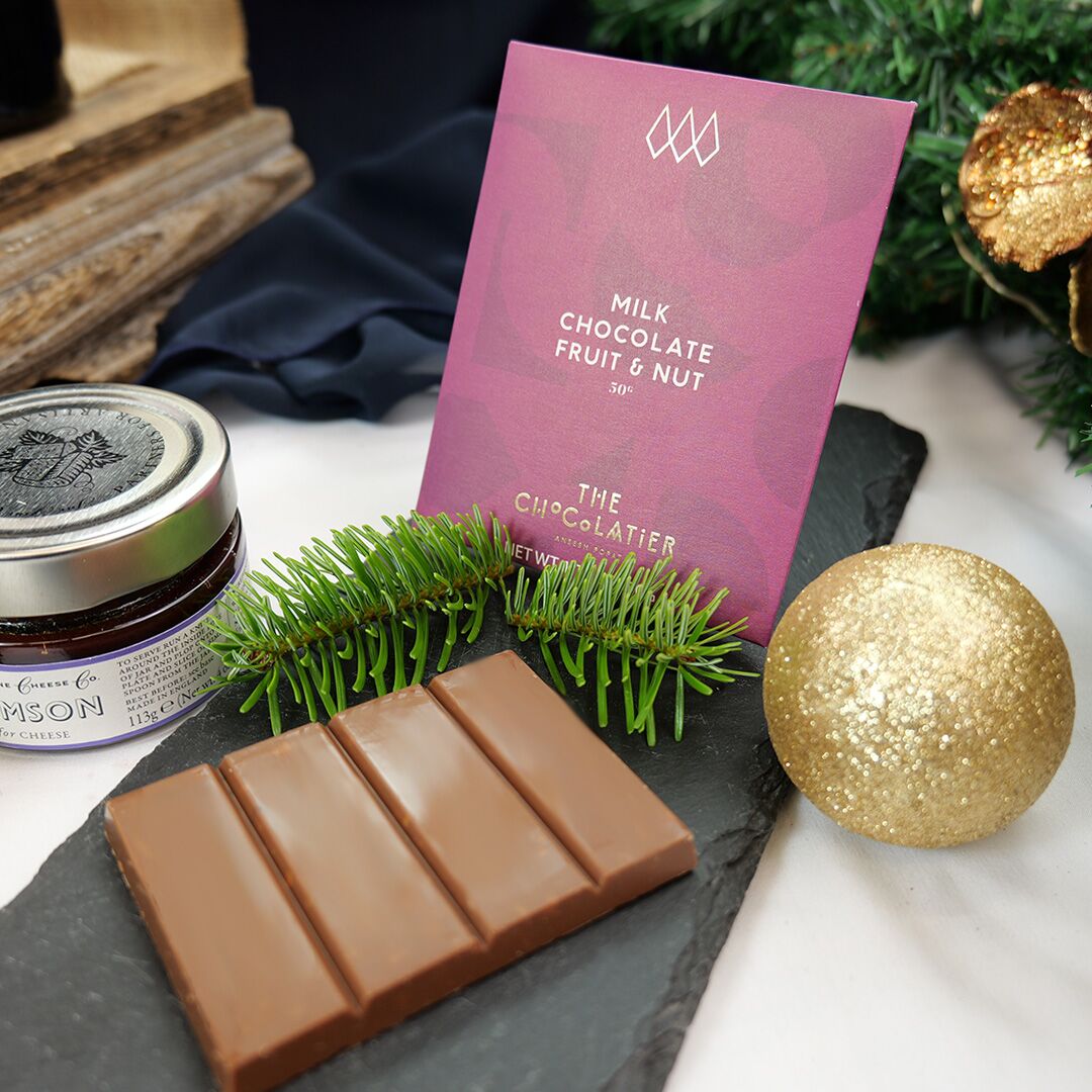 Finally, a bar of The Chocolatier Milk Chocolate Fruit & Nut, which adds a luxurious sweet note to complete the experience.